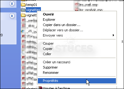 - Cliquez avec le bouton droit de la souris sur le dossier à modifier puis cliquez sur la commande Propriétés.
