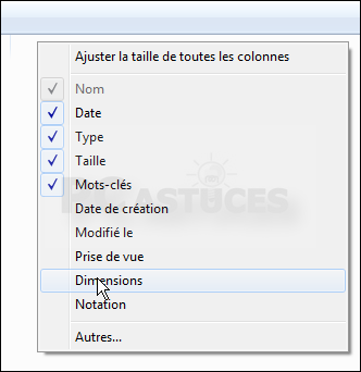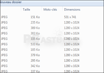 Afficher la taille des images - Windows 7
