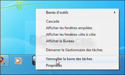 - Cliquez de nouveau avec le bouton droit de la souris sur la barre des tâches et activez l'option Verrouiller la barre des tâches.