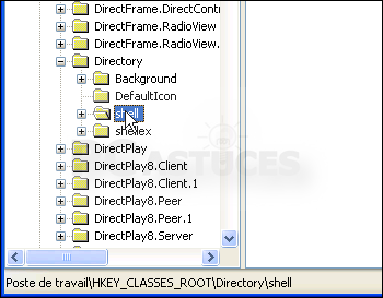 - Déroulez alors la clé HKEY_CLASSES_ROOT, Directory, shell.