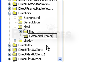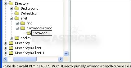 - Cliquez sur le menu Edition, Nouveau puis sur Clé et nommez la nouvelle clé CommandPrompt.