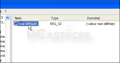 - Dans le cadre droit, double cliquez sur la valeur Par défaut.