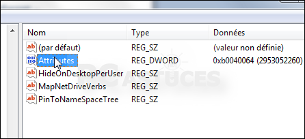 - Dans la partie droite de la fenêtre, double cliquez sur la valeur Attributes.